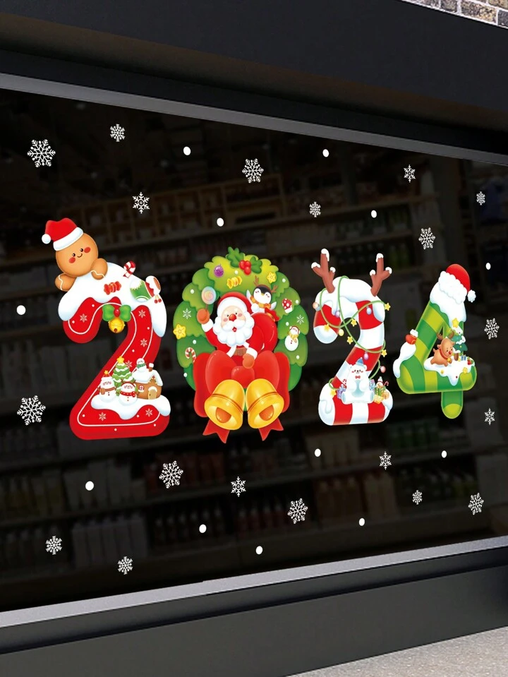 1pc 2024 New Christmas Decoration Sticker Glass Decal Window Door